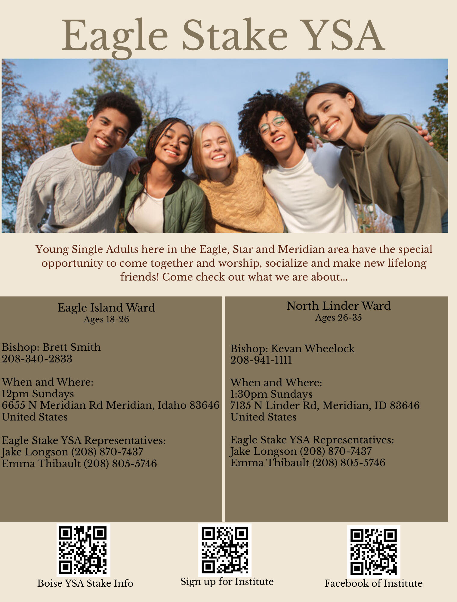 LINK: Official Ward Website : A resource to share with friends that includes meeting times, location, ward activities, and what to expect when worshipping with us.